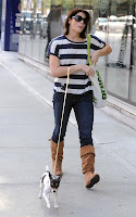 Ashley var ute med sin lilla hund Marlow och i bakgrunden kan man se glada fans.