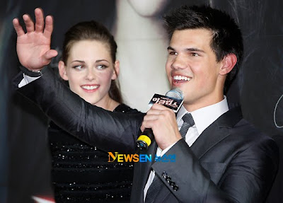 Kristen Stewart och Taylor Lautner är nu i Korea och de har fullt upp. De har redan hunnit vara på två olika ställen ett fan event och en presskonferens.